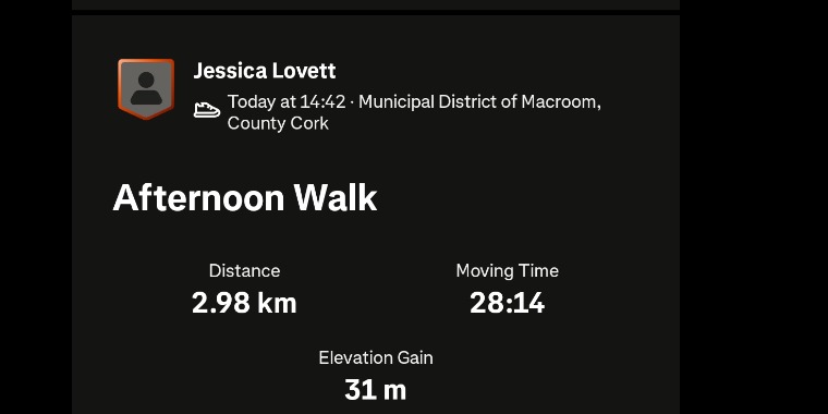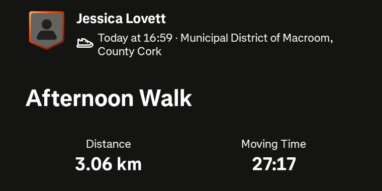 3km walk/run with buddy this evening. Reached my fastest speed of the challenge during one of the sprints! And 1km walk to the coffee shop on a college break today!